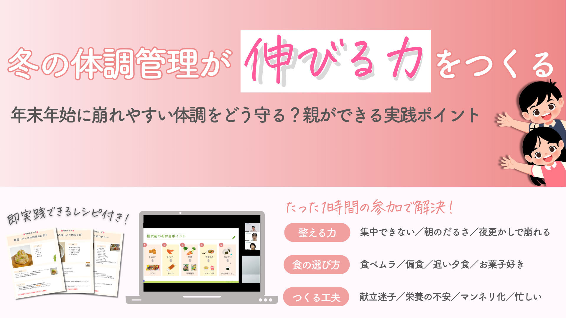 「家庭で実践できる“学びを支える献立レシピ”」を特典として学べます。