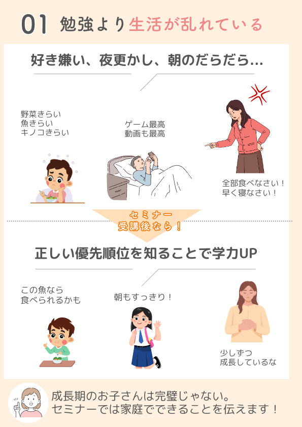 | 主な対象者 | 小学生~高校生・保護者様 | 受験生・保護者、および食事サポートをしたい人 |