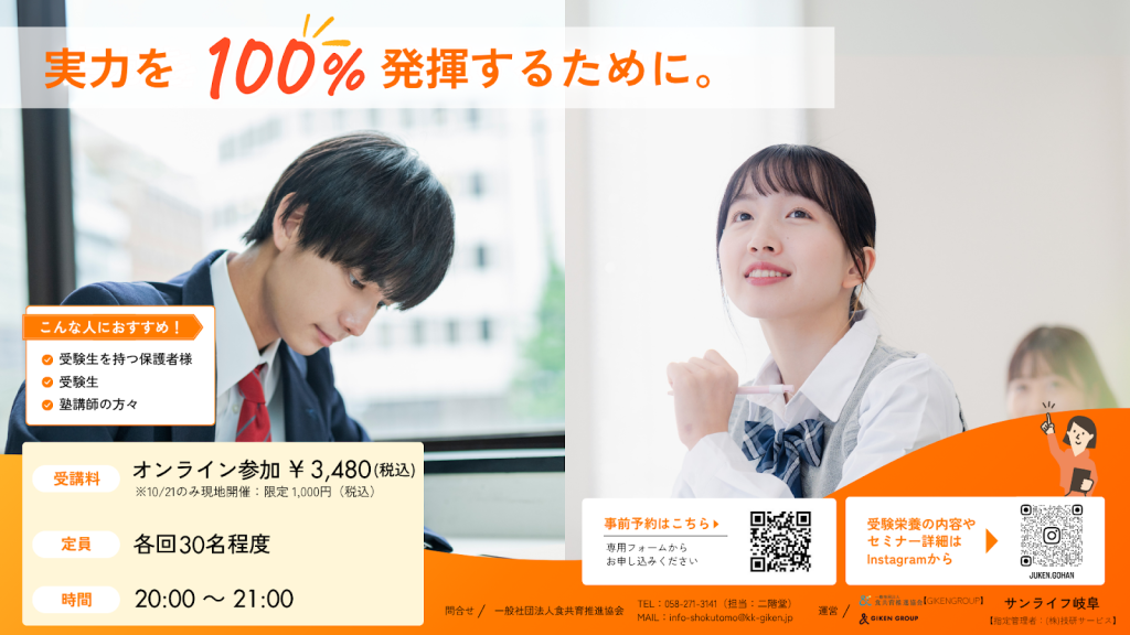 そこで次回セミナーでは、 「模試で実力100%!集中力を落とさない“本番コンディション”の整え方」 をテーマに、さらに詳しく実践的な方法を解説します。
