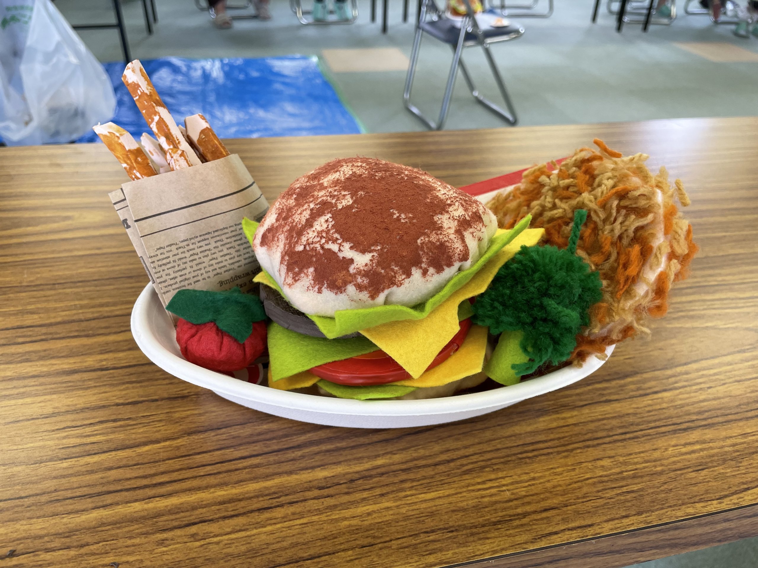 2023.08.05 県営各務原公園 各務原公園 夏休みこども工作教室開催!! 8月5日 県営各務原公園にて 夏休みこども工作教室を開催しました!!! 本日みんなが挑戦したのは、紙や綿、フェルトを使ったハンバーガー作り🍔🍔🍔 ハサミや絵の具を駆使して、バンズやハンバーグ、トマトを重ねて完成!!ポテトやブロッコリーも添えました。 こども達は時折り笑顔を見せながら真剣な表情で取り組んでおり、 完成した作品を嬉しそうに袋に詰めてもってかえっていました。