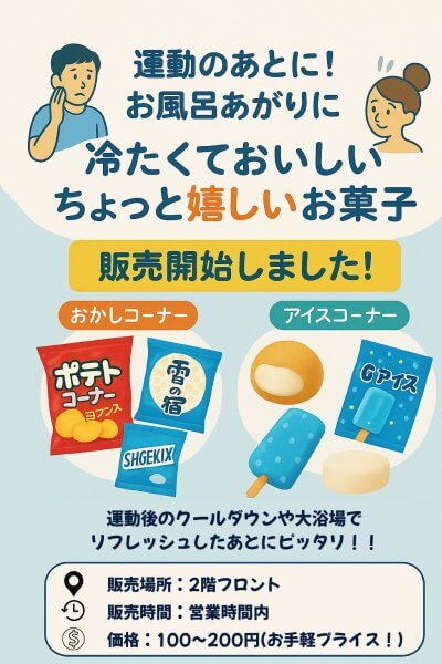 運動後に大浴場で汗を流した後、アイスでさっぱり出来たら最高です!