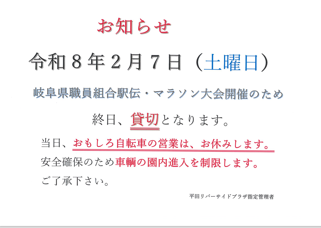 岐阜県職員組合駅伝・マラソン大会に伴う規制のお知らせ
