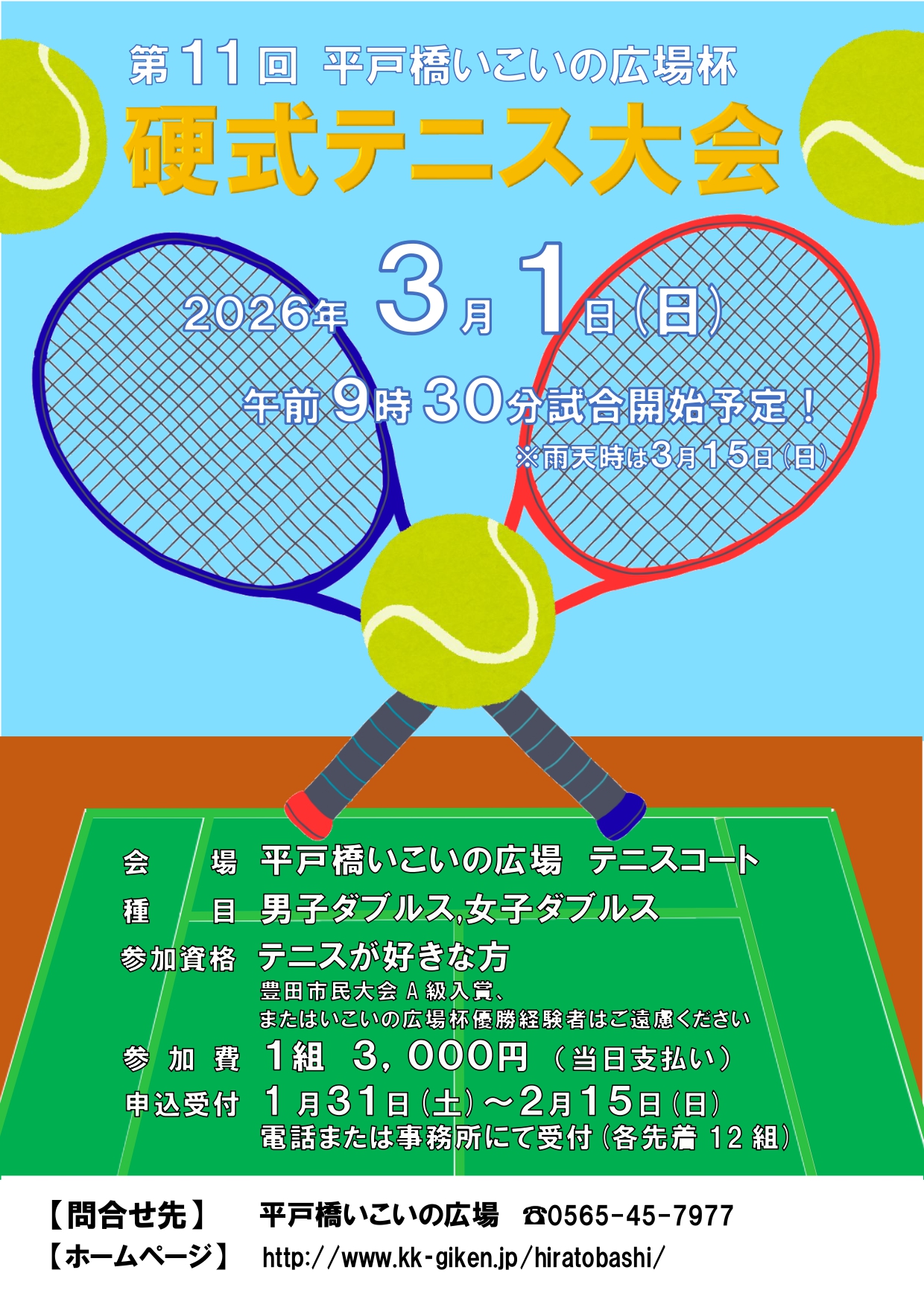 第11回 豊田市平戸橋いこいの広場杯硬式テニス大会を開催します。