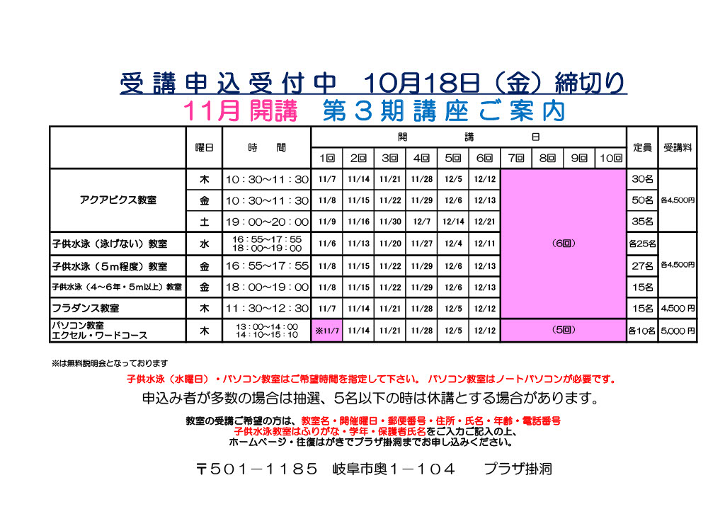 【令和6年 11月開講講座受付について】