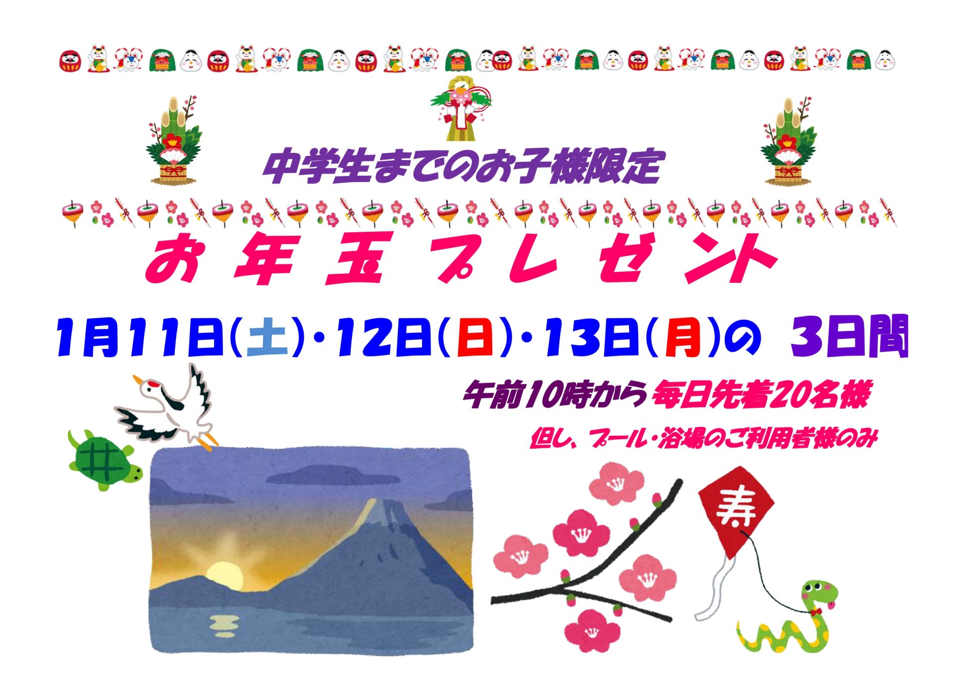 お年玉 プレゼント 11日、12日、13日