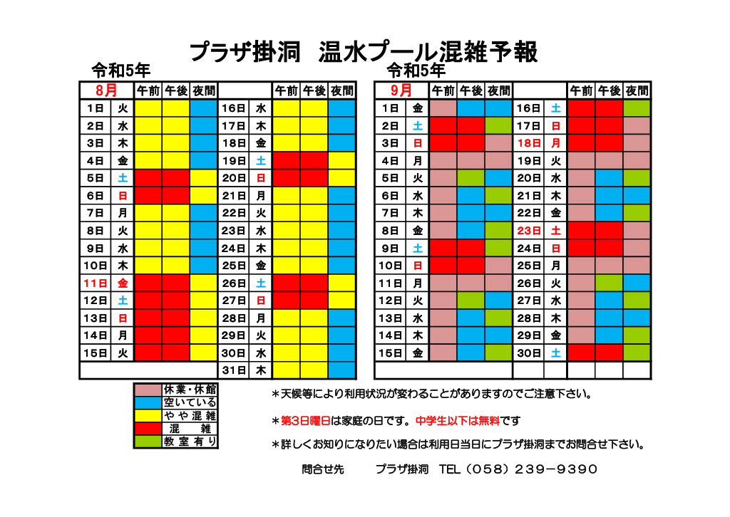 令和5年8月・9月のプール混雑予報