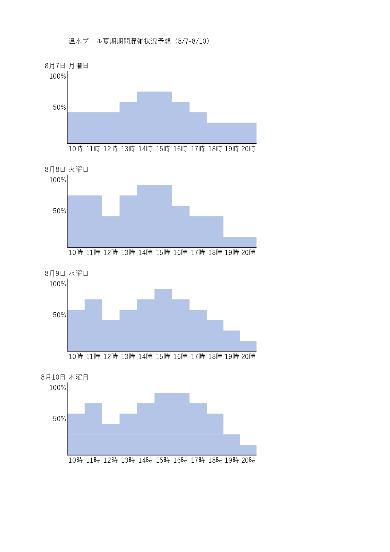 2023.08.07 お知らせ 夏期学校休業期間の時間混雑予想(8/07-8/10) 土日には待ち時間が発生することがあります。 更衣室のロッカーキーが出払うと、帰ってくるまでお待ちいただくことがあります。 混雑状況を更新しました 一覧に戻る