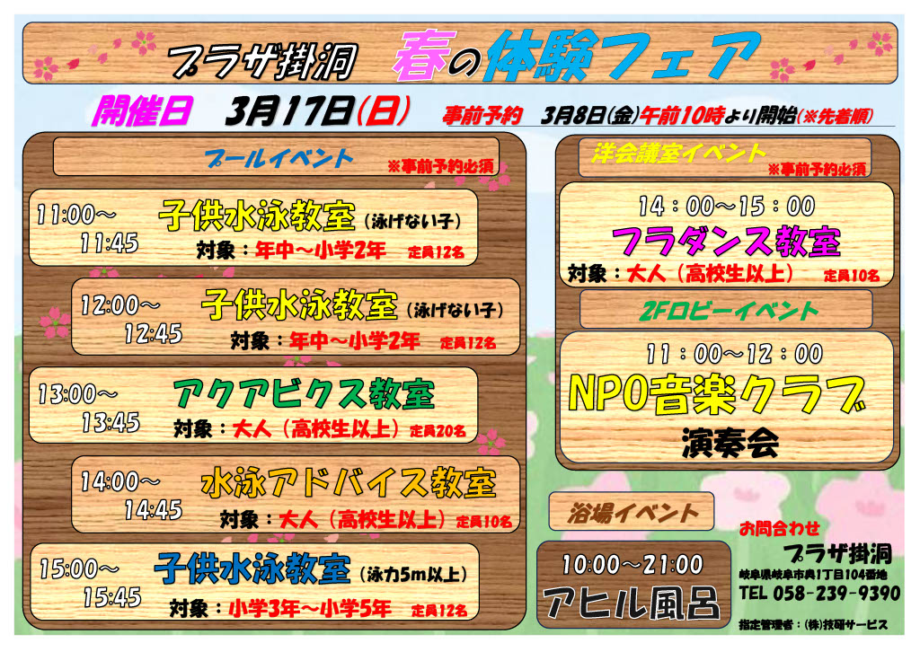 *事前申込み 3月8日(金)午前10時開始(各教室定員になり次第締切)