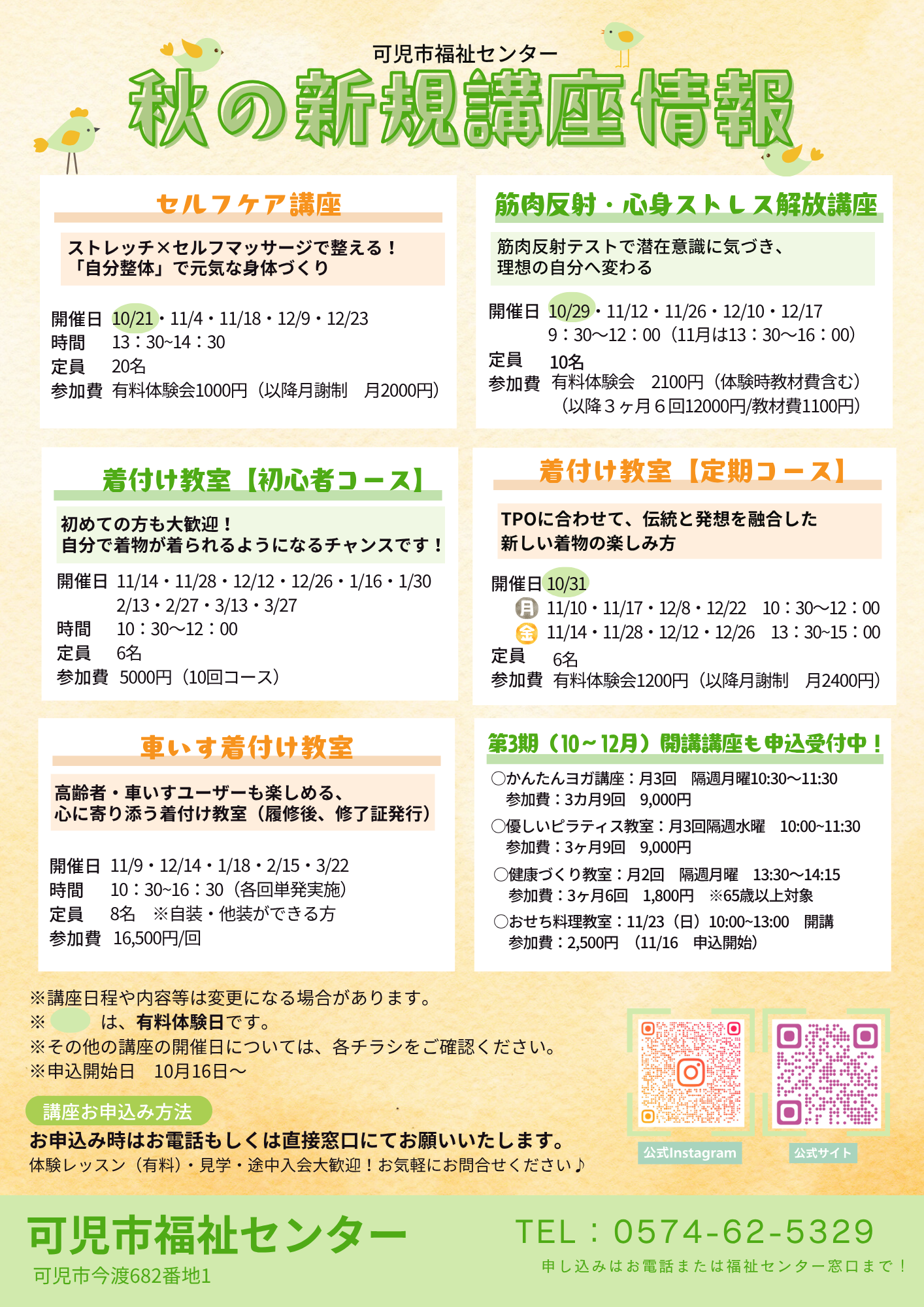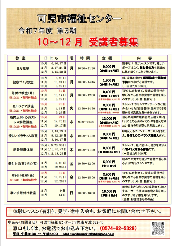 【お申込み・お問合せは可児市福祉センター(0574-62-5329)までご連絡ください】