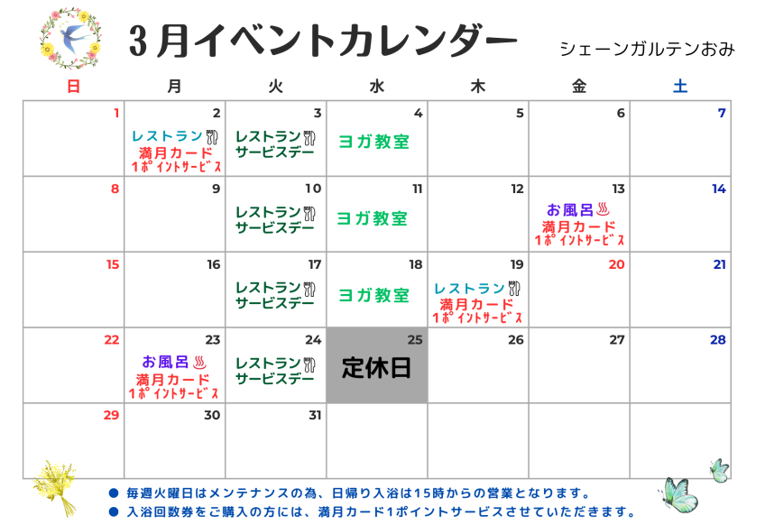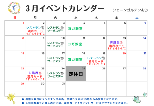 日頃より、シェーンガルテンおみをご愛顧いただきまして、誠にありがとうございます。 メンテナンスのため、令和7年9月~令和8年3月の間、 毎月、最終水曜日を定休日とさせていただきます。 お客様にはご迷惑をおかけして申し訳...