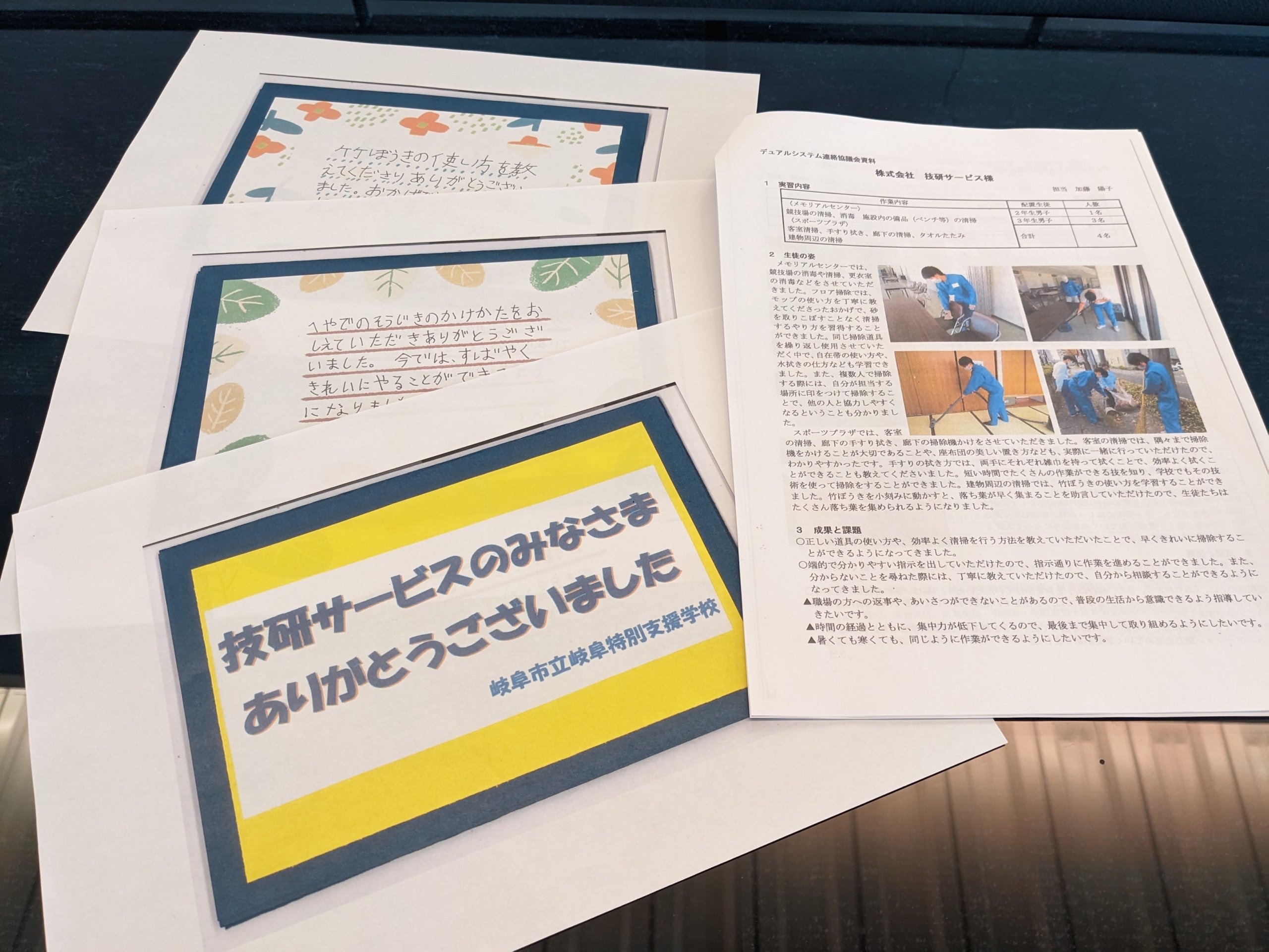 2023.03.27 ビルメンテナンス お礼のお手紙いただきました! こんにちは!技研サービスのBM事業部です。 先日、清掃の現場実習を行った特別支援学校の学生さんからお礼のお手紙をいただきました! 感謝のお言葉、とても嬉しく思います。 実習お疲れさまでございました!