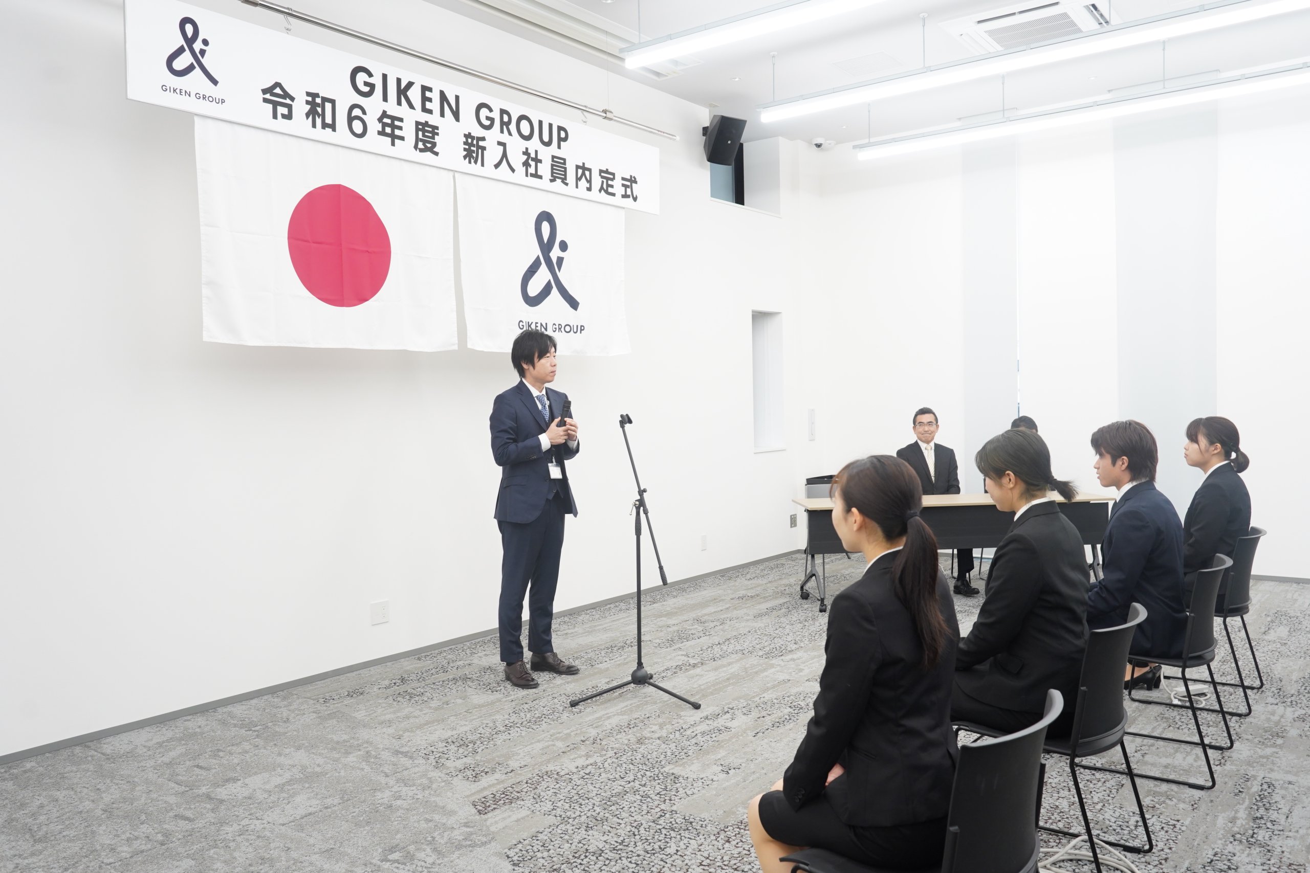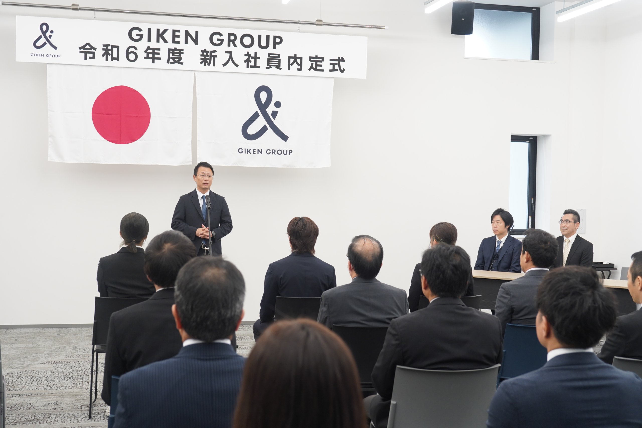 2023.10.05 新卒採用 令和6年度新入社員内定式を行いました こんにちは!技研サービスです。 10月5日(木)、GIKEN GROUPの令和6年度新入社員内定式を執り行いました。 今年度は4名の内定者が参加し、GIKEN GROUP社員が迎え入れました。 内定式では棚橋社長挨拶、証書授与から始まり、内定者がそれぞれ決意表明を行いました。 内定者全員が将来のビジョンをしっかり見据え、堂々と目標を宣言している姿が印象的でした。 また、部署長から各部署の展望と激励の言葉を頂きました。 内定者はそれぞれの事業内容と自身のやりたいことをイメージさせながら話を聞いていました。 懇親会では更にリラックスした状態で役員・部署長たちと交流を深めました。 当社を選んでくれた4名が入社後どんな活躍をしてくれるのか、今からとても楽しみです!