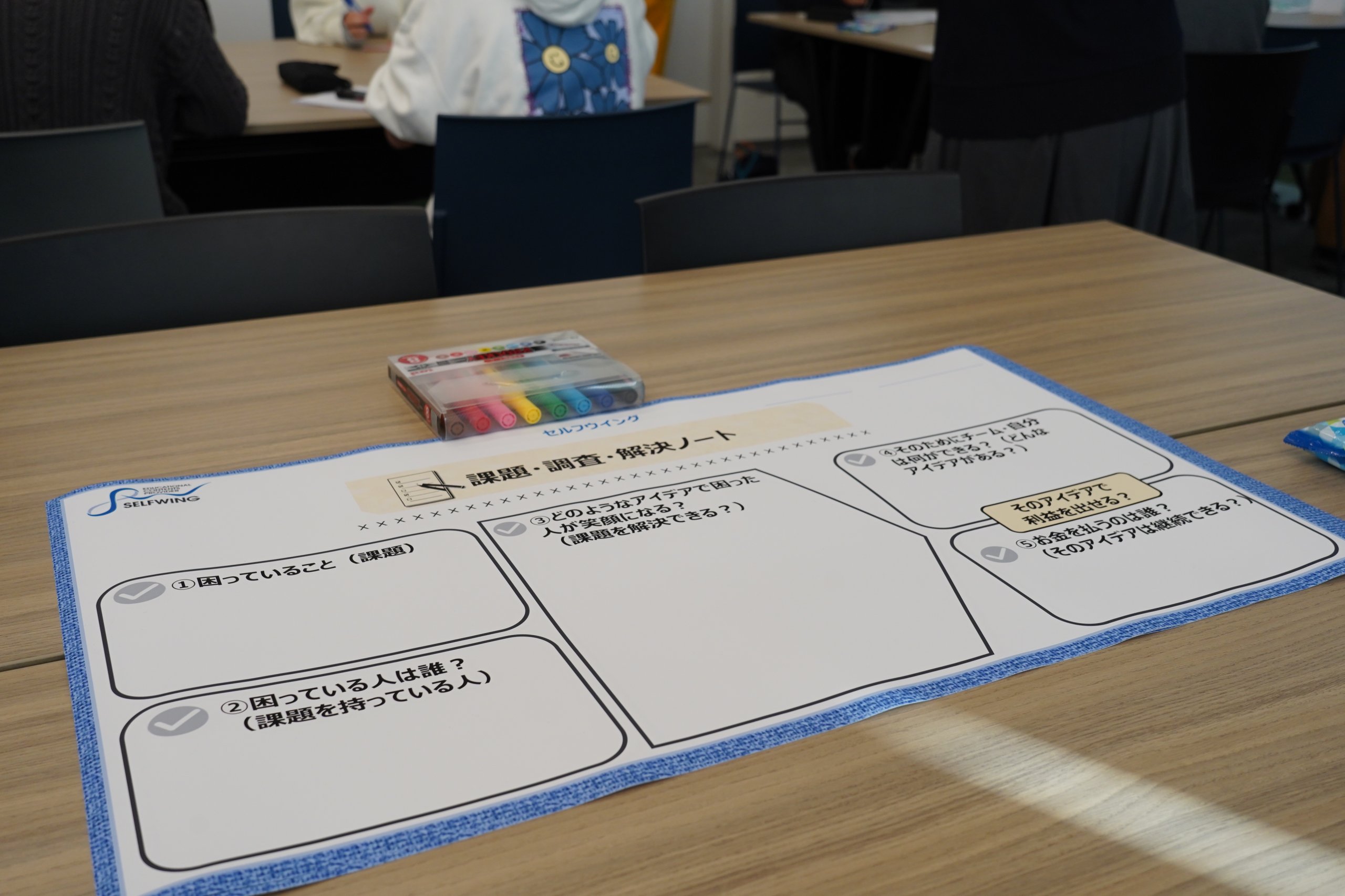 ワークシートに沿って自分たちで課題を設定、それに対する解決策やプランを制作、最後は全体に向けての発表もありました。