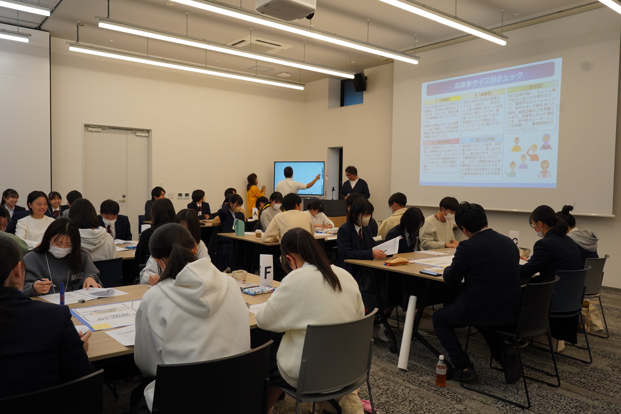 保護者の方々が見守る中、サポートもありながら学生同士で意見を出し合う様子が多くみられました。