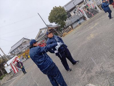 先日、海津市平田町で開催された伝統の火祭り「今尾の左義長」の警備を行いました!
