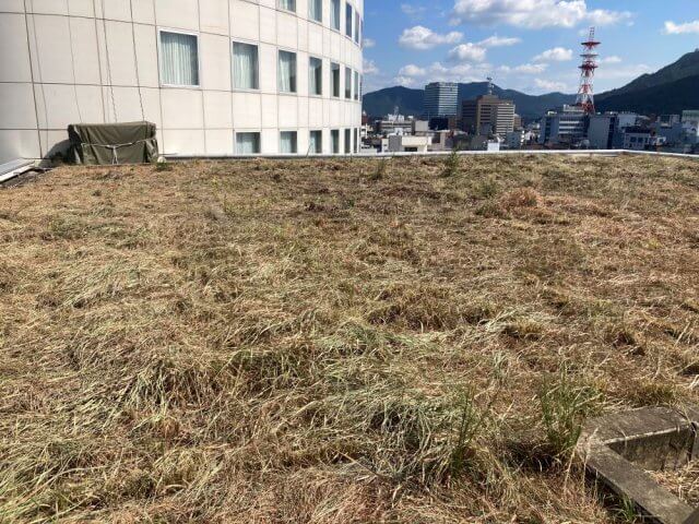 先日、岐阜市内のホテルにて、屋上の草刈り・除草作業を行いました。