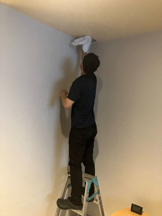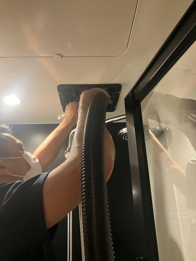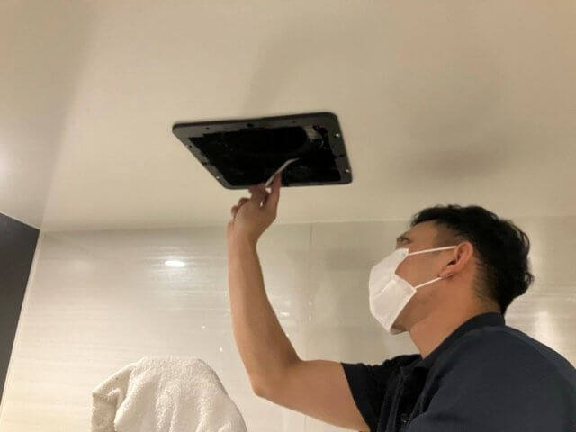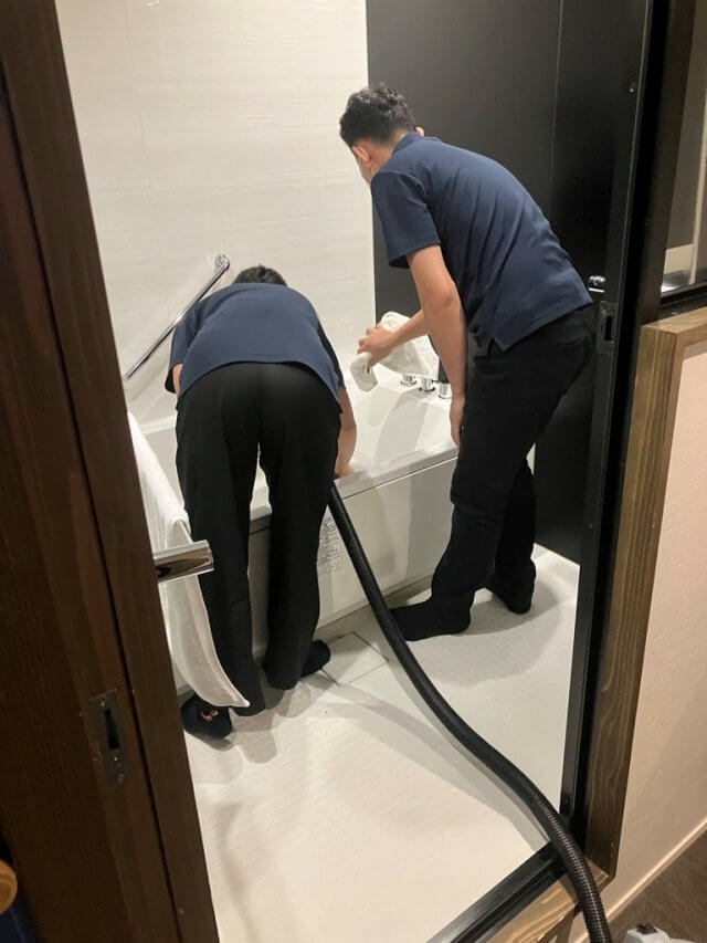 技能実習生が客室の換気孔清掃を担当し、普段のルームメイクでは手の届きにくい部分まで丁寧に仕上げました。お客様に快適に過ごしていただけるよう、細部まで気を配っています。