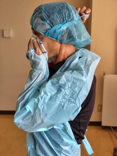 作業員は、ヘアキャップ・高性能マスク・ゴーグル・エプロン・手袋を着用し、感染を「絶対に起こさない」「ウイルスを拡散させない」という強い使命感を持って、細心の注意を払って作業にあたっています。
