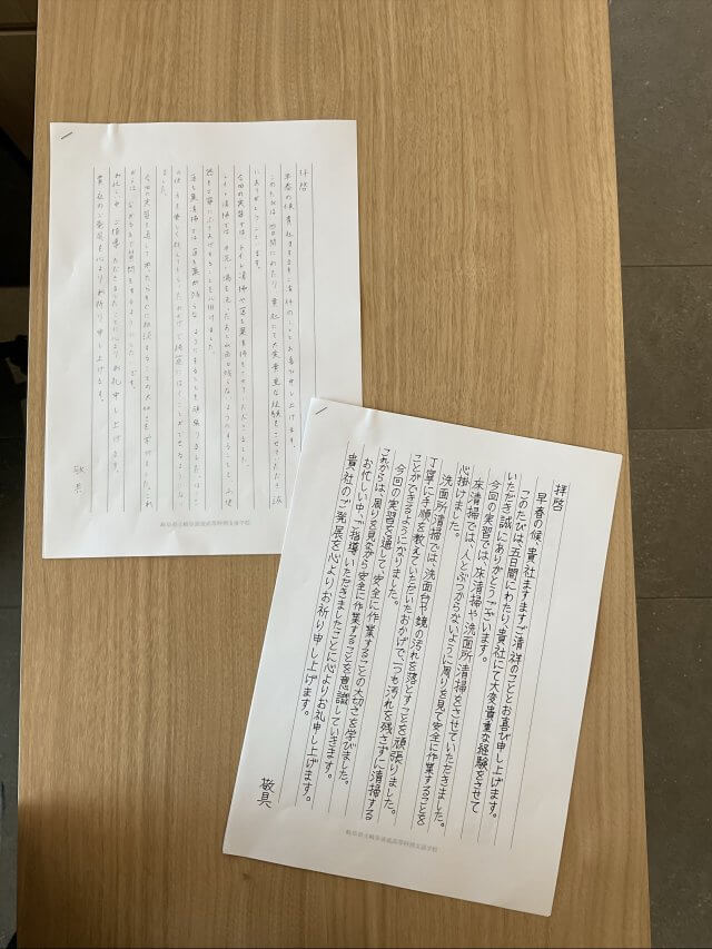 先日、岐阜県立岐阜清流高等特別支援学校の生徒さんより企業内実習受け入れのお礼のお手紙を頂きました!