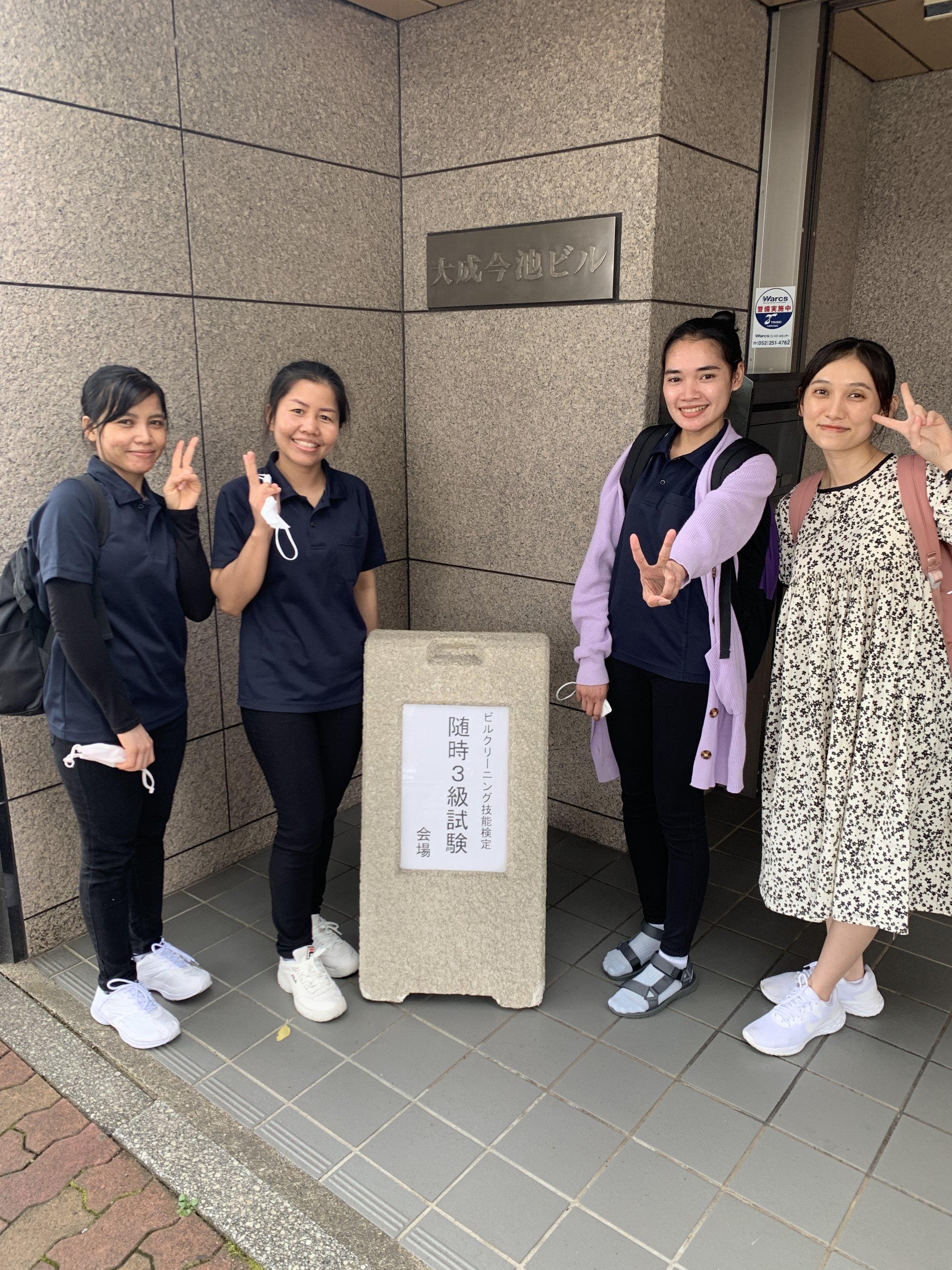 2023.07.14 ビルメンテナンス 実習生が試験を受けました! こんにちは!技研サービスのBM事業部です。 先日、外国人技能実習生の方たちが「随時3級ビルクリーニング技能検定」の試験を受けました! 緊張しているかと思いましたが、皆リラックスしつつ試験の時間まで教え合いながら勉強している姿に感動しました。 この頑張りが結果に繋がってくれることを祈るのみです!! 一先ず実習生の皆さんお疲れ様でした!!