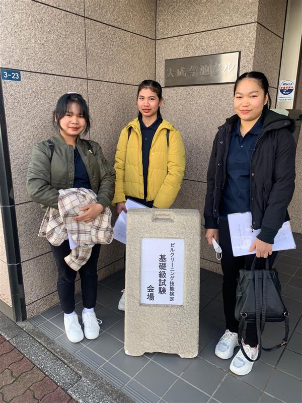 2023.12.15 ビルメンテナンス ベトナム人実習生が基礎試験を受験しました! 先日、ベトナム人実習生3名が基礎級技能検定試験を受けました! 試験まで日にちがないなかで必死で練習する姿や試験当日もギリギリまで3人で清掃道具の確認をしていました。 この頑張りが結果に繋がってくれたらと思います。 まずは実習生の皆さんお疲れ様でした!