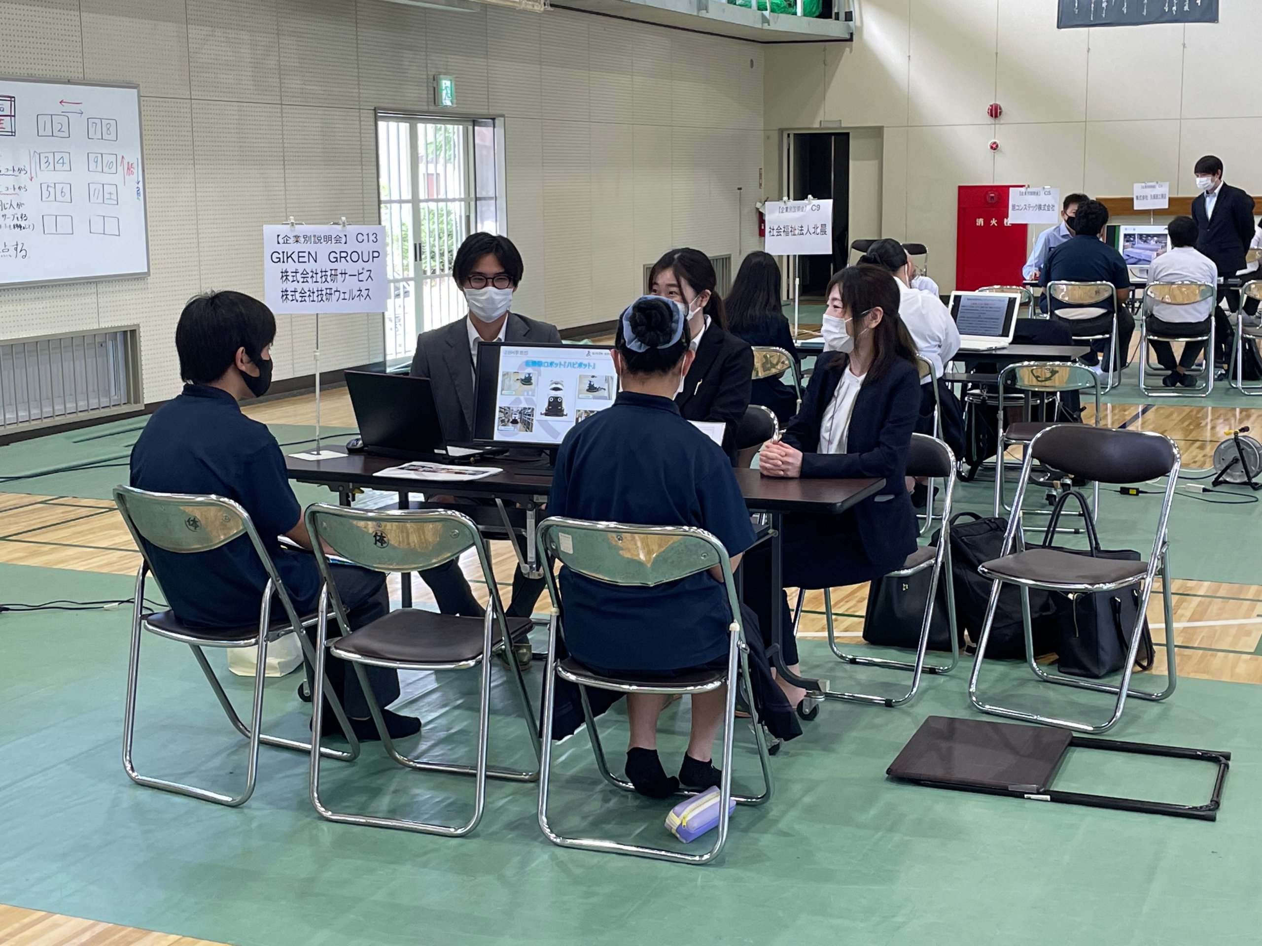 2023.06.21 フードサービスビルメンテナンス 学内企業説明会に出展しました! こんにちは!技研ウェルネスです。 先日、揖斐高校で開催された3年生対象の企業説明会に、技研サービスBM事業部と共同で参加しました! 各大学や地元企業を含め30団体ほどが参加した大きな学内イベントでした。 当日は新入社員も同席し、若手目線から当社についての説明やGIKEN GROUPの魅力を高校生たちに伝えることができました。 魅力のある企業PRを行い、来年度の高卒採用者の獲得を目指します!