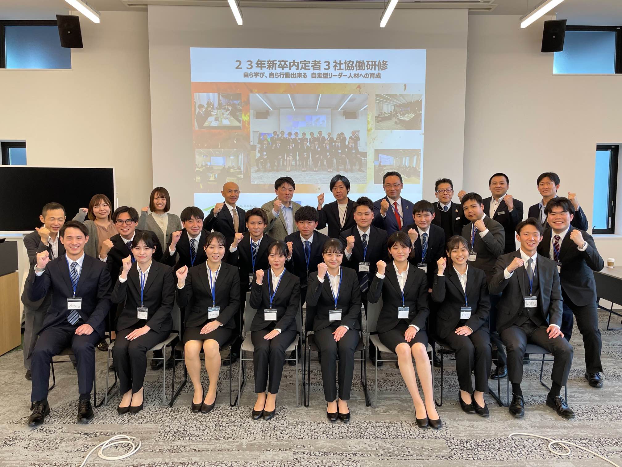 3社の内定者は真剣に参加した社員のアドバイスに耳を傾け、お互いに研鑽しながら高い意識を持って取り組んでおり、他社との関わりの中で3か月間で大きな成長がみられました。