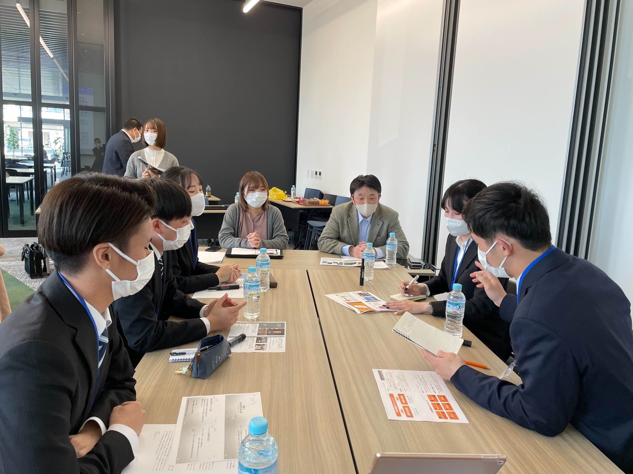 研修では、事前に出された「内定期間中の成長・変化したこと」「内定期間中に得た経験・知見をふまえた入社理由のアップデート」という課題に対し、3社の若手社員、中堅社員も加わり色々な視点でアドバイスが飛び交いました。